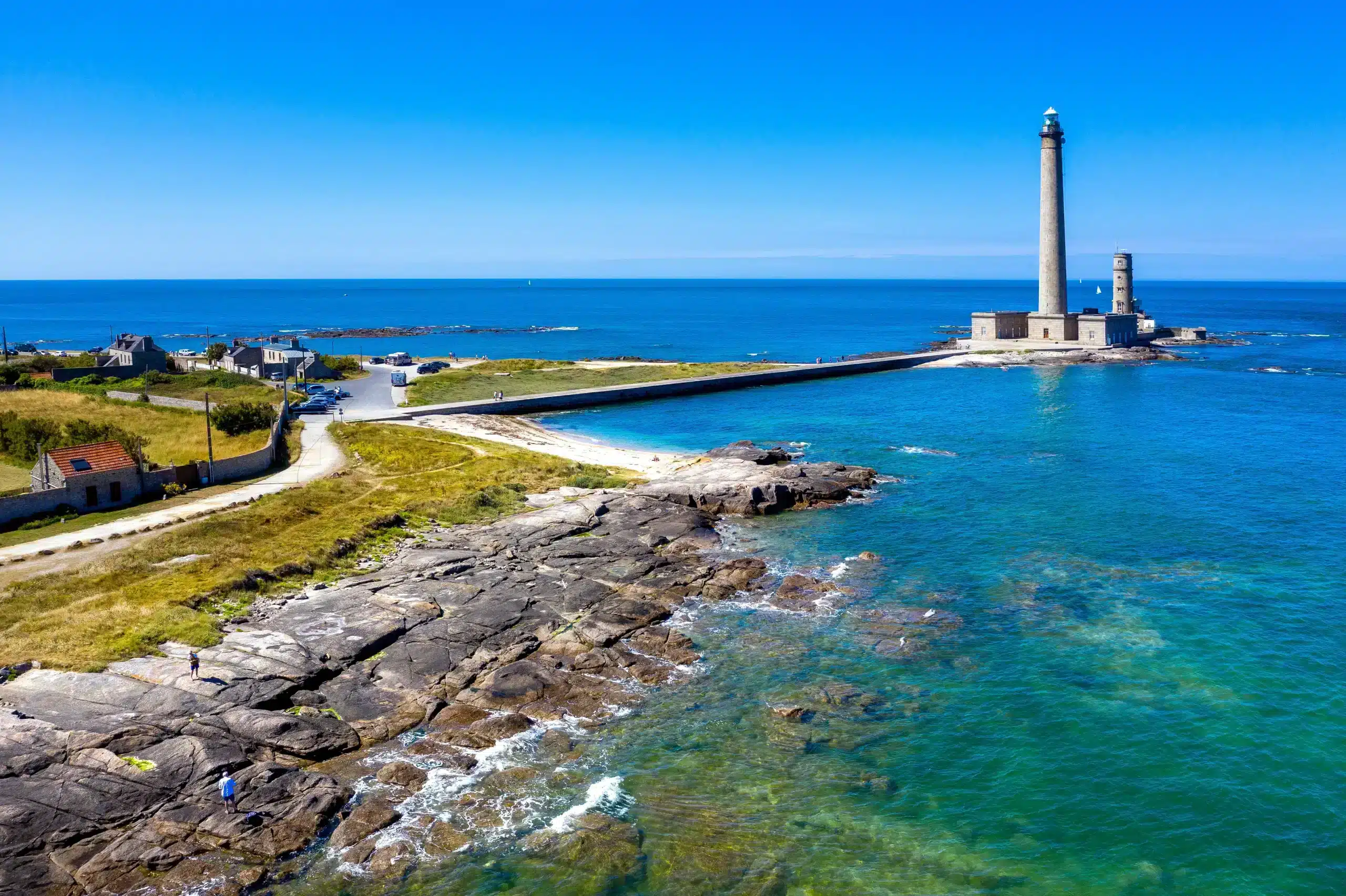 Barneville-Carteret occupe une position centrale sur la côte ouest du Cotentin. Au nord, les paysages sauvages de la Hague. À l’est, Cherbourg et le patrimoine normand. Au large, Jersey et Guernesey. Tout s’atteint en moins d’une heure — sans jamais perdre de vue la mer.